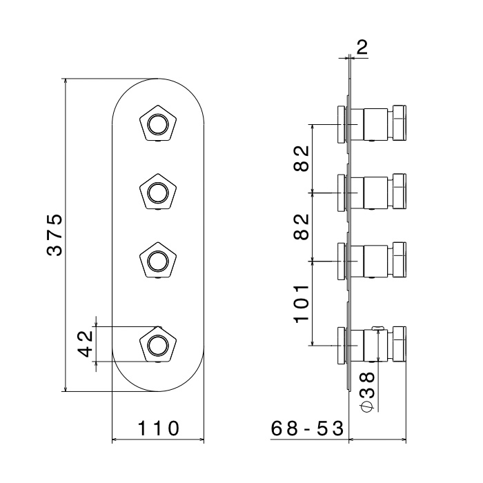 Смеситель для душа термостат Newform ParkLE 69803E.05.093 Хром Newform ParkLE Внешняя часть термостатического смесителя на 3 потока с отдельными ручками запорного вентиля, цвет: хром + черный матовый