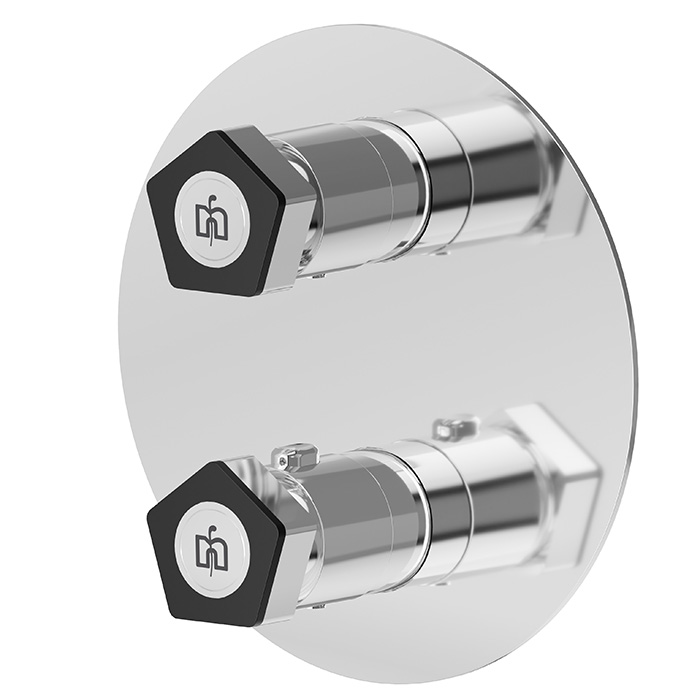 Смеситель для душа термостат Newform ParkLE 69808E.05.093 Хром Newform ParkLE Внешняя часть термостатического смесителя с ручкой для регулировки температуры и перекл. , цвет: хром + черный матовый