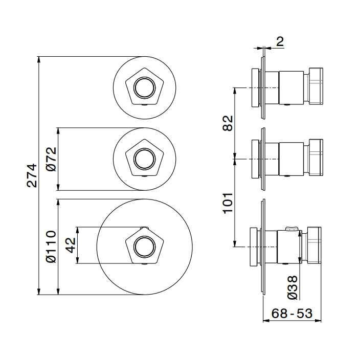 Смеситель для душа термостат Newform ParkLE 69809E.05.093 Хром Newform ParkLE Внешняя часть термостатического смесителя на 2 потока с отдельными ручками запорного вентиля, цвет: хром + черный матовый