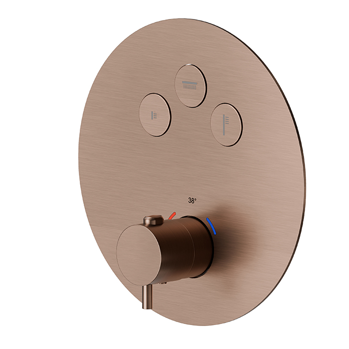 Смеситель для душа термостат Newform X-Steel 316 70427EX.59.067 Медь Newform X-Steel 316 Наружная часть для термостатического смесителя, на 3 источника, переключение - кнопки (для 27752) цвет: PVD Brushed copper bronze