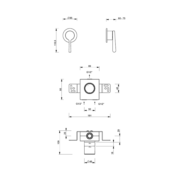 Встраиваемый смеситель для душа Fantini Torino 58 02 L963B Хром FANTINI Torino Встраиваемый смеситель для душа, на 1 выход хром (Наружная часть.)