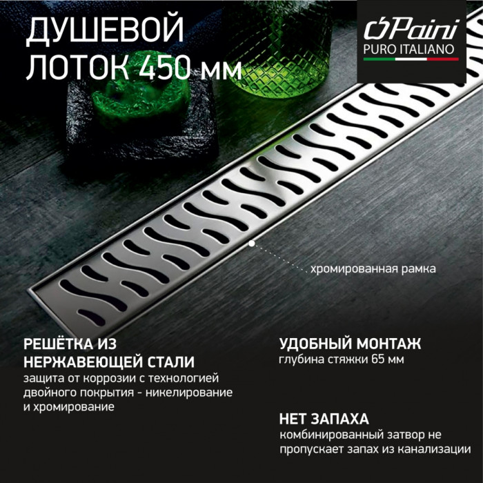 Душевой лоток с рамкой PAINI Harmony 450 мм CH450HN Лотки хромированные Чехия