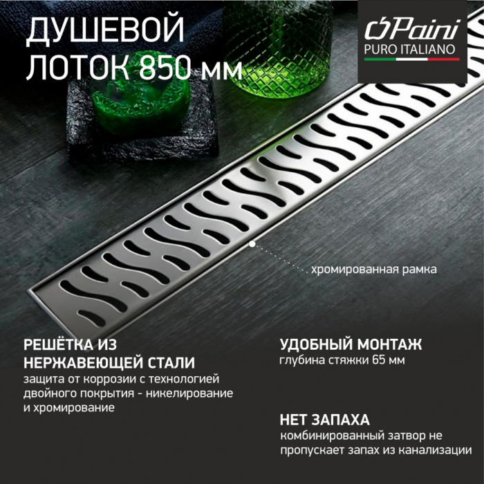 Душевой лоток с рамкой PAINI Harmony 850 мм CH850HN Лотки хромированные Чехия