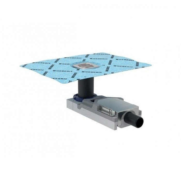 Для монтажа внутри зданий, для отвода воды из душевых, находящихся на уровне пола, для композитных герметиков, для сбора сточной воды от одной душевой сетки, для встраивания при очень тонком напольном покрытии, для высоты выравнивающей стяжки 65 мм на входе, высота гидразатвора составляет только 30 мм, что отличается от требований стандарта en 1253, покрытие пола плиткой толщиной 2–30 мм, предварительно уложенный уплотняющий флис, уплотняющий флис по всему периметру 10 см, для подсоединения уплотнительных систем, решётка из нержавеющей стали, решётка подгоняется по высоте, наклону отклонению, корпус из вспенивающегося полистирола для звукоизоляции снятия сифона, пропускная способность слива 0,4 л/с, высота гидрозатвора 30 мм, крышка защитного короба со слезником, надставка для укладки облицовочных плиток, вставка-гребень, рама решетки уравнительным кольцом, решётка, сифон из пнд, крепеж