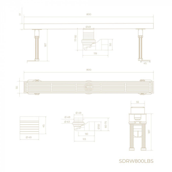 Душевой трап линейный Knotlor SDRW0800LBS матовая сталь