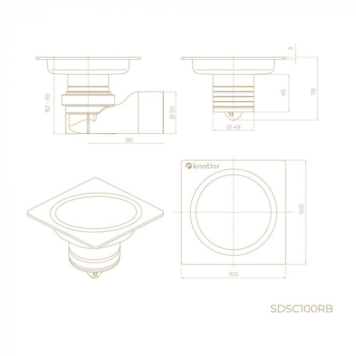 Душевой трап точечный Knotlor SDSC100RB бронза Квадратный трап в цвете бронза для стильных душевых зон. Оснащен магнитным сухим затвором, пропускная способность 36 л/мин Китай 10 лет 7930139834760