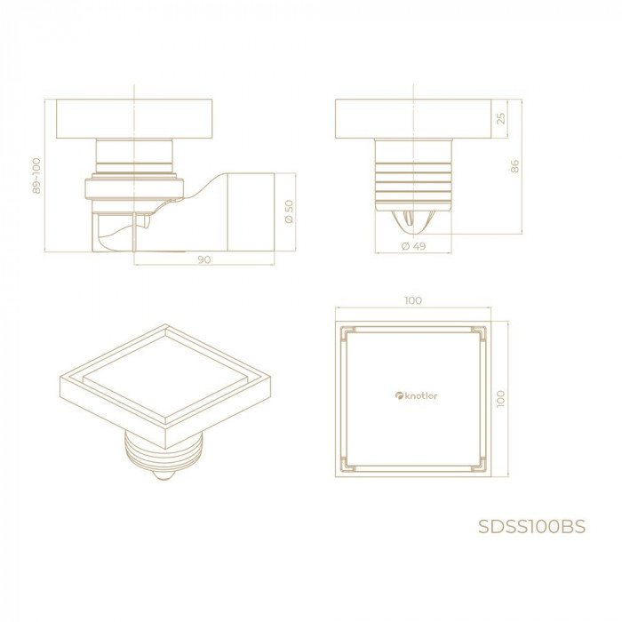 Душевой трап точечный Knotlor SDSS100BS матовая сталь