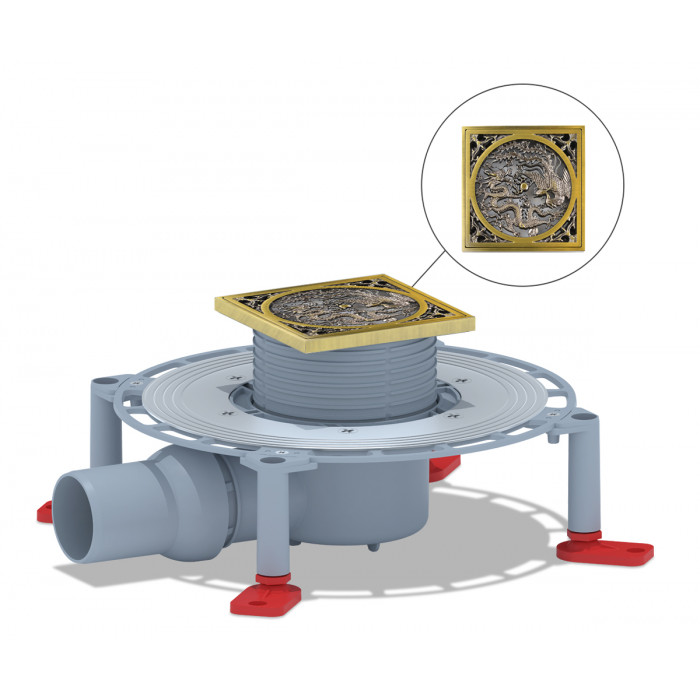 Трап для душа горизонтальный регулируемый, сухой затвор, дизайн-решетка Дракон Bronze de Luxe 21986-5602 бронза, латунь Bronze de Luxe 21986-5602 ретро латунь бронза матовая трап с решеткой ИТАЛИЯ