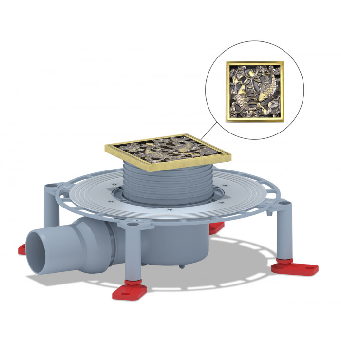 Трап для душа горизонтальный регулируемый, сухой затвор, дизайн-решетка Рыбы Bronze de Luxe 21980-5602 бронза, латунь Bronze de Luxe 21980-5602 ретро латунь бронза матовая трап с решеткой ИТАЛИЯ
