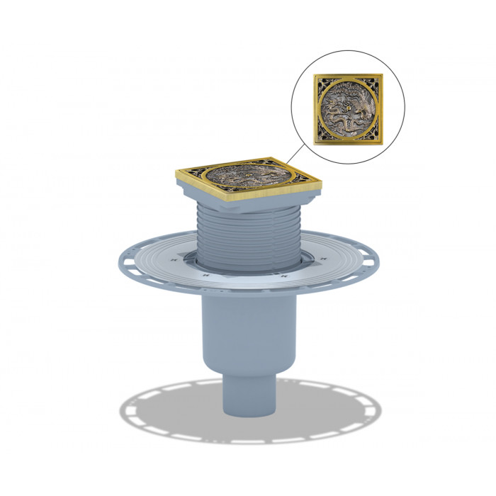 Трап для душа вертикальный регулируемый, магнитный сухой затвор, дизайн-решетка Дракон Bronze de Luxe 21986-5902 бронза, латунь Bronze de Luxe 21986-5902 ретро латунь бронза матовая трап с решеткой ИТАЛИЯ