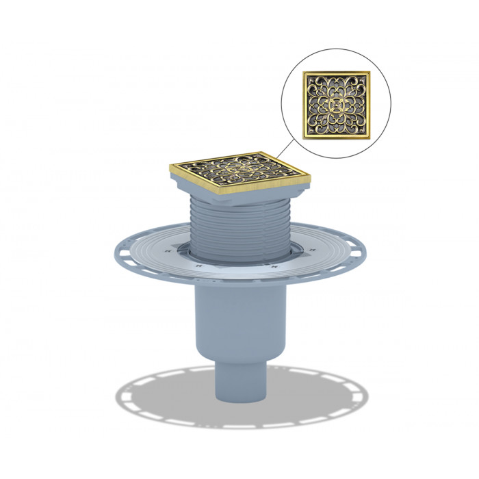 Трап для душа вертикальный регулируемый, магнитный сухой затвор, дизайн-решетка Узоры Bronze de Luxe 21962-5902 бронза, латунь Bronze de Luxe