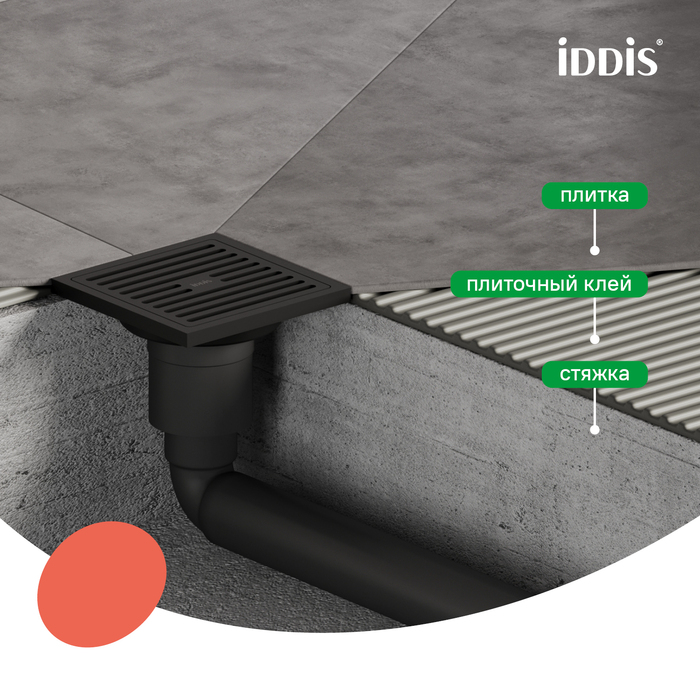 Трап душевой, вертикальный выпуск, сухой затвор, 10х10см, матовый черный, IDDIS, 980CV10BL3DDZ Душевой трап IDDIS® в матовом черном цвете с утяжеленной решеткой и вертикальным выпуском предназначен для отведения воды в канализацию из зоны принятия душа. Он заменит традиционные поддоны с бортиками, предлагая универсальный дизайн решетки и возможности для создания стильного интерьера ванной комнаты. Размер решетки — 10 x 10 см; подходит для плитки толщиной до 12 мм.