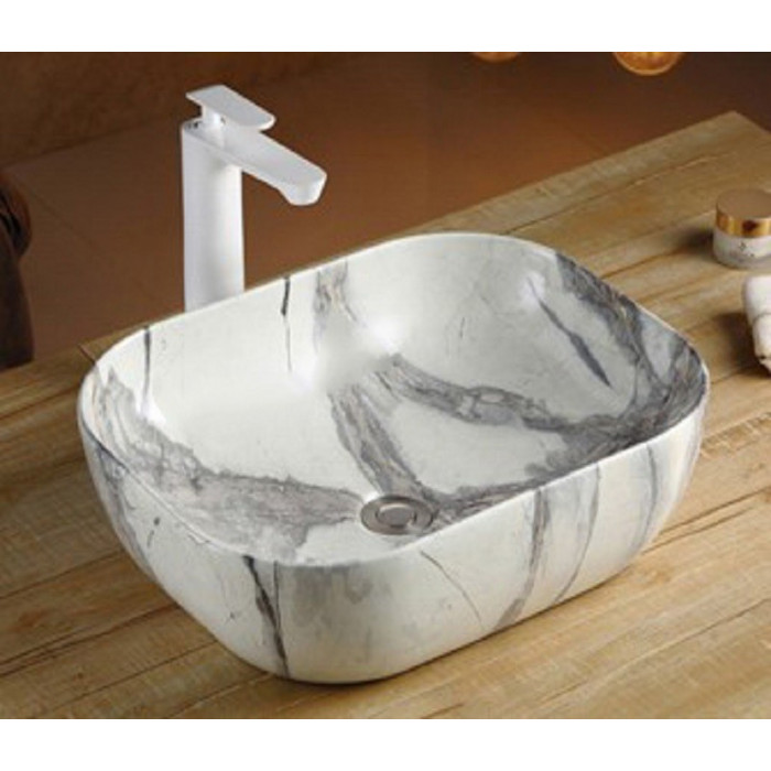 Умывальник CeramaLux K397G125 Под камень Фаянс прямоугольная современный стиль 1 год
