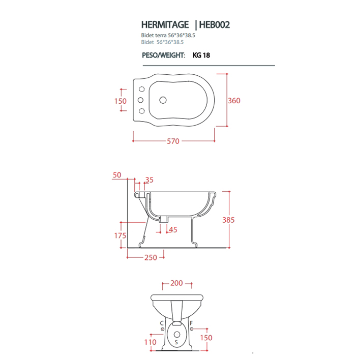 Биде Artceram HERMITAGE HEB002 01 00*1 Белый Artceram HERMITAGE биде напольное 55*36см с 1 отв под смеситель с креплением, цвет белый