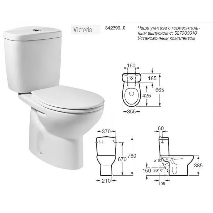 Напольный унитаз Roca Victoria 34239U000 (бачок и сидень отдельно)