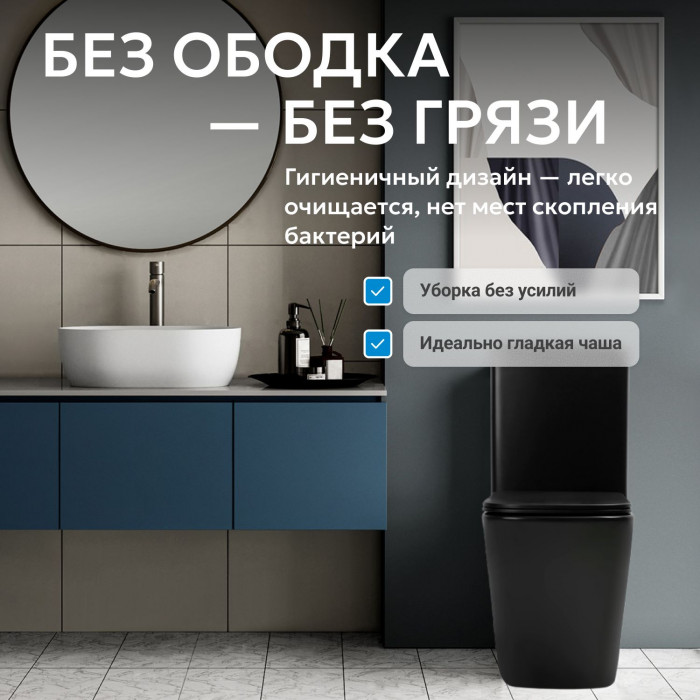 Унитаз ABBER Rechteck AC1210TMB компакт черный матовый, безободковый, смыв торнадо