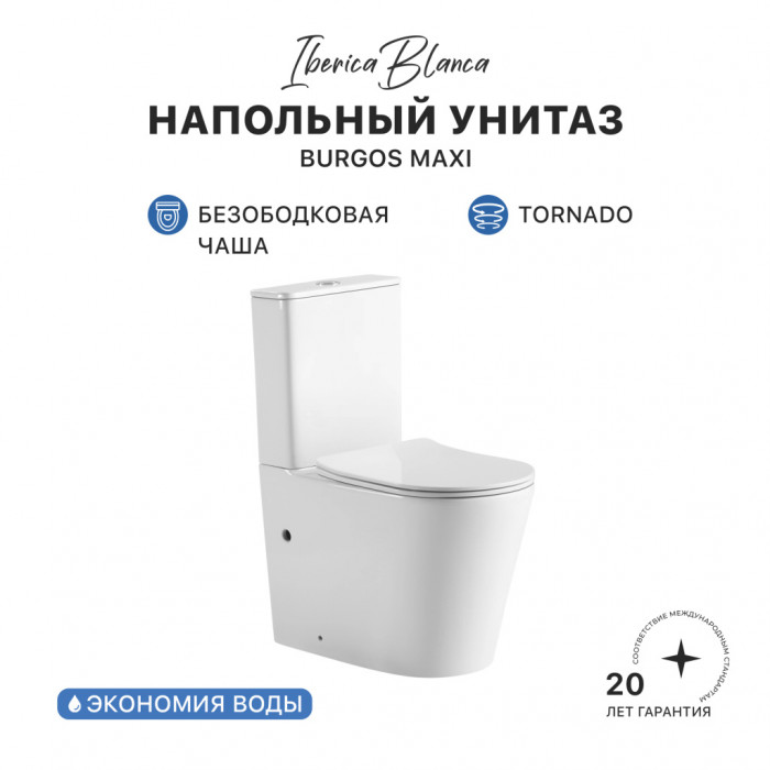Унитаз-компакт IBERICA BLANCA BURGOS MAXI Tornado белый (IB.BRM.124.1B1) IBERICA BLANCA IB.BRM.124.1B1 20 лет Испания