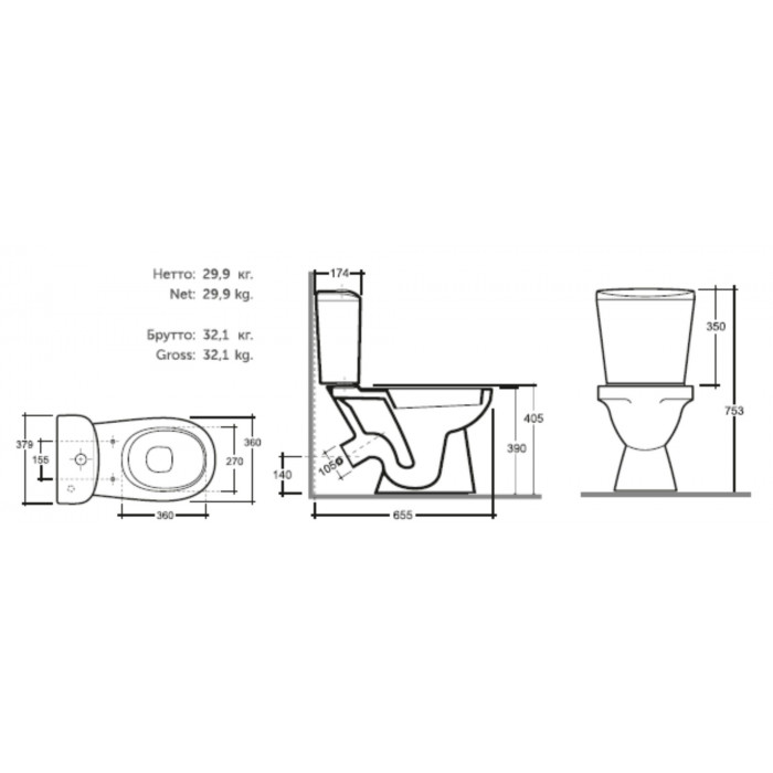 Унитаз-компакт КЕРАМИН Лаго Жесткое сиденье Алкапласт белый с1 CS00077199 Белоруссия напольный унитаз-компакт 5 лет косой санфарфор дюропласт снизу бачка Одна кнопка (полный слив) крепления#сиденье#Сливная арматура