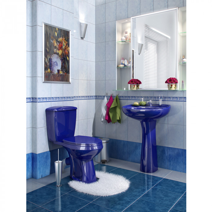 Унитаз-компакт Оскольская керамика Элисса Стандарт, с сиденьем, синий 43355130202 Россия напольный унитаз-компакт 12 лет косой фарфор полипропилен снизу бачка Одна кнопка (полный слив) крепления#сиденье#Сливная арматура#Удлинитель гибкий гофрированный