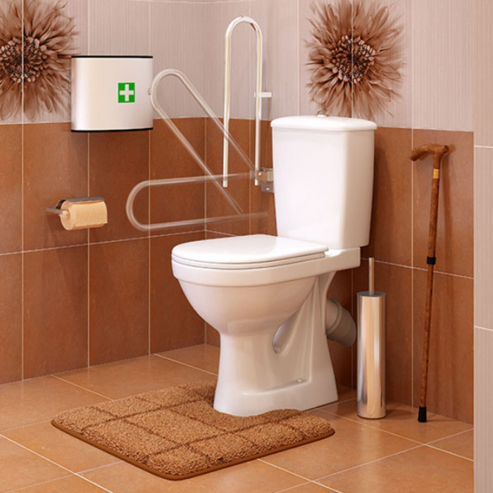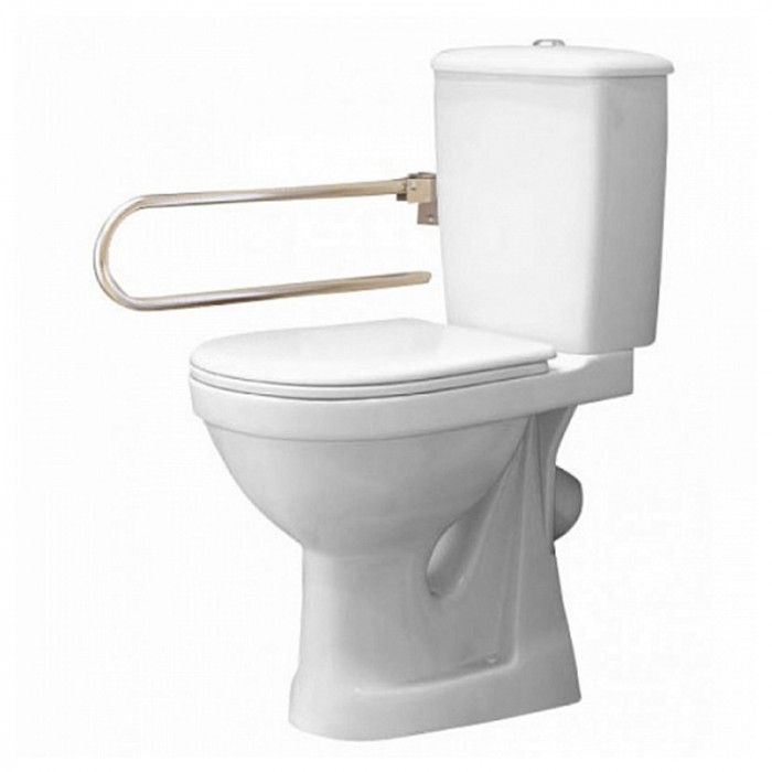 Унитаз-компакт Оскольская керамика Персона Комфорт, с откидным нержавеющим поручнем, с сиденьем, белый 42301120006 Россия напольный унитаз-компакт 12 лет косой фарфор полипропилен снизу бачка Одна кнопка (полный слив) крепления#Сливная арматура#поручень#сиденье