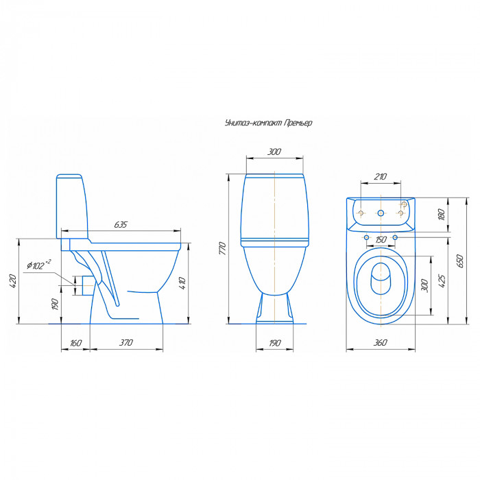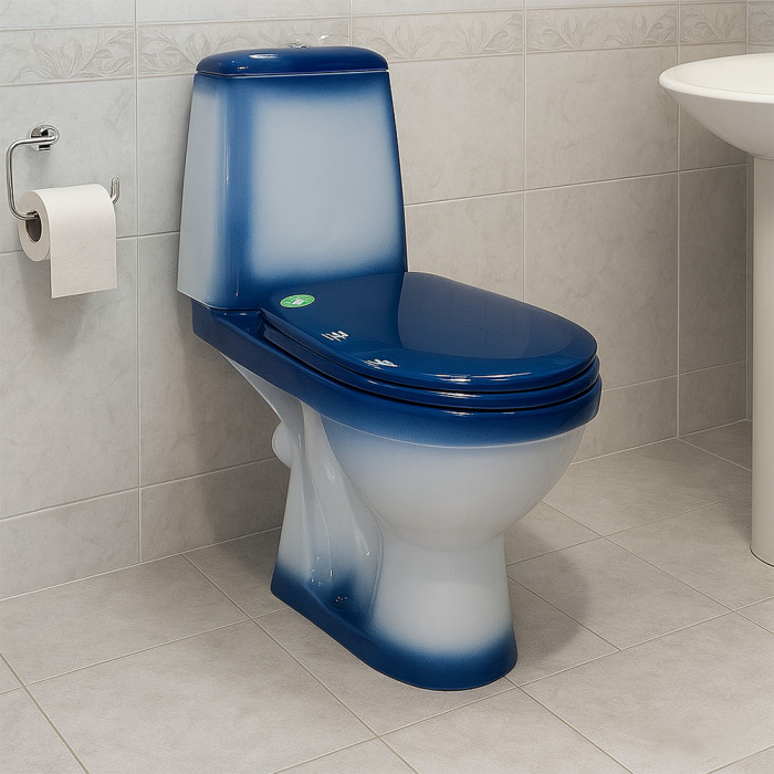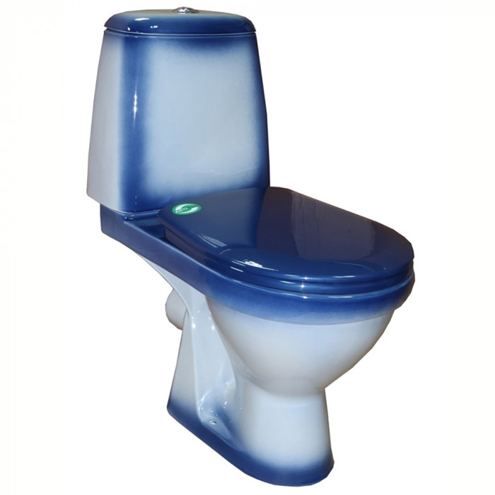 Унитаз - компакт Rosa "Премьер" 360х635х770 ободковый, 2-х режимная арматура, синий декор CS00094172 Россия напольный унитаз-компакт 10 лет горизонтальный санфаянс полипропилен снизу бачка Две кнопки (режим эконом) крепления#сиденье#Сливная арматура
