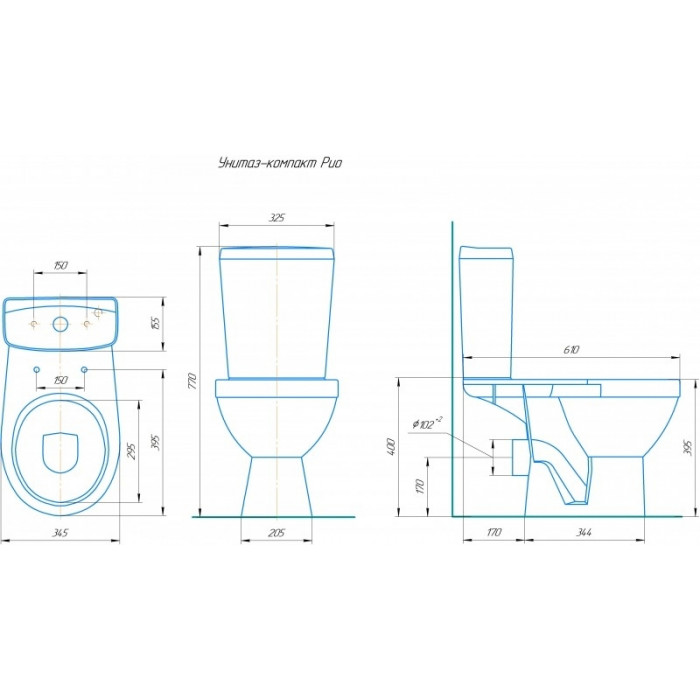 Унитаз-компакт Rosa Рио двухрежимный, синий декор CS00094180 Россия напольный унитаз-компакт 10 лет горизонтальный санфарфор полипропилен снизу бачка Две кнопки (режим эконом) крепления#сиденье#Сливная арматура