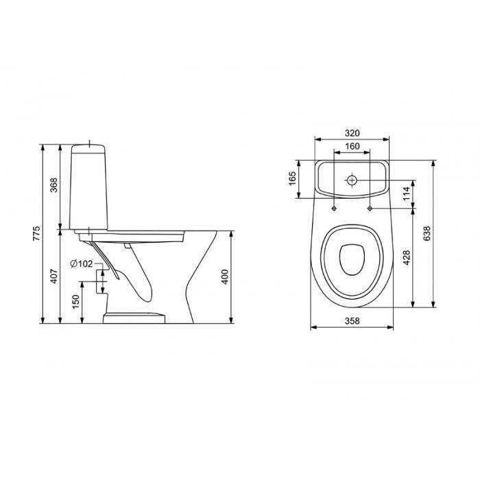 Унитаз-компакт Santeri Грация с горизонтальным выпуском, сиденье полипропилен 1.P210.3.S00.00B.F