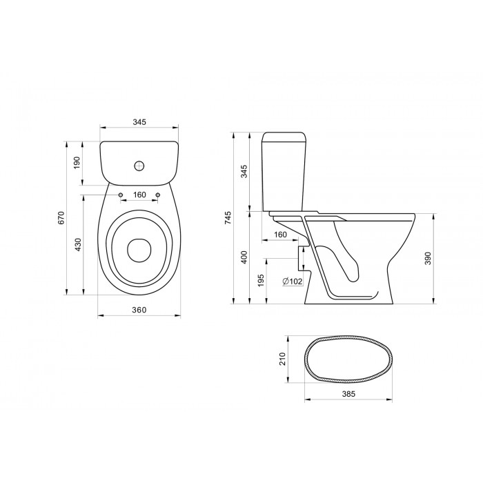 Унитаз-компакт Santeri Pro с бачком, с сиденьем, белый 1.P215.5.S00.00B.F