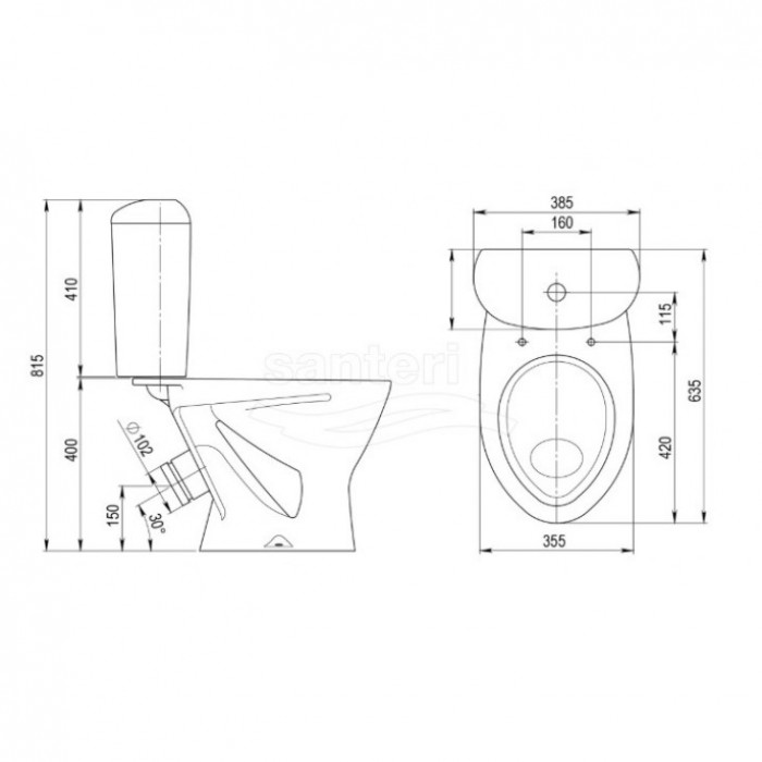 Унитаз-компакт Santeri Versia напольный, с сиденьем 1.P403.3.S00.00B.F Россия напольный унитаз-компакт 5 лет косой фарфор полипропилен снизу бачка Две кнопки (режим эконом) крепления#сиденье