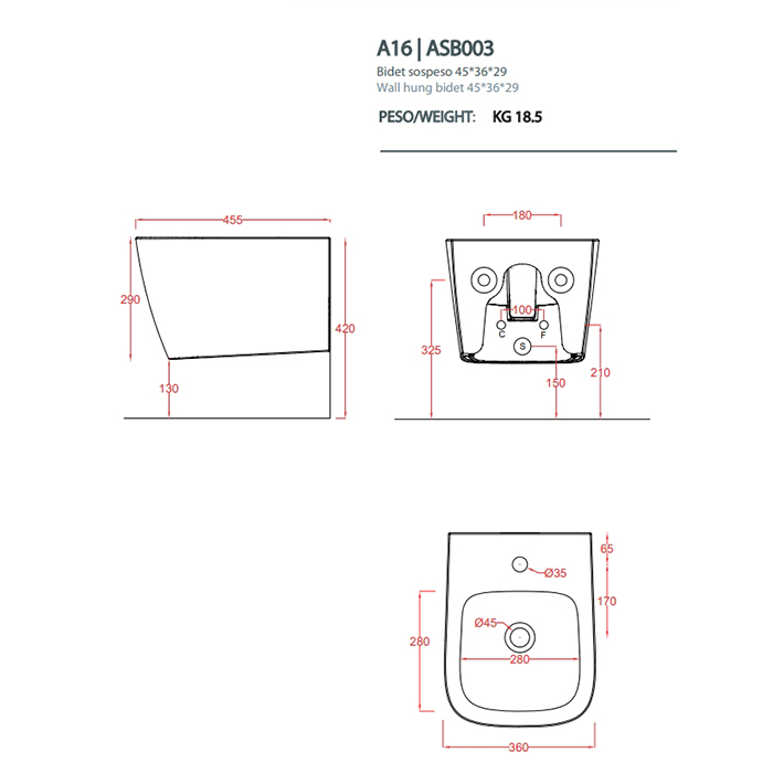 Биде Artceram A16 ASB003 01 00 Белый Artceram A16 MINI Биде подвесное 36х45 см, с 1 отв под смеситель, с креплениями, цвет белый.