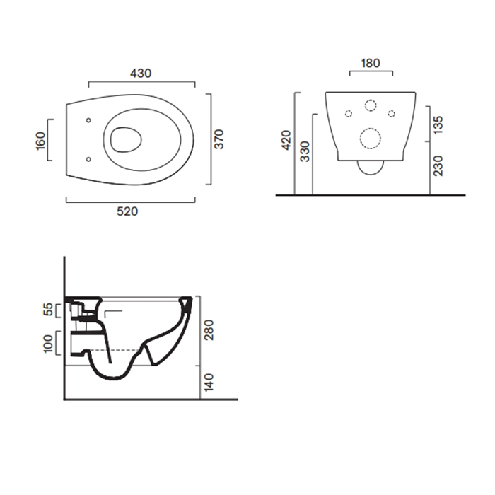 Унитаз подвесной 52x37, безободковый , смыв Tornado, покрытие Cataglaze+ Catalano Italy 711520001 белый Catalano Italy Унитаз подвесной 52x37, безободковый , смыв Tornado, покрытие Cataglaze+, без крепежа, цвет белый глянцевый