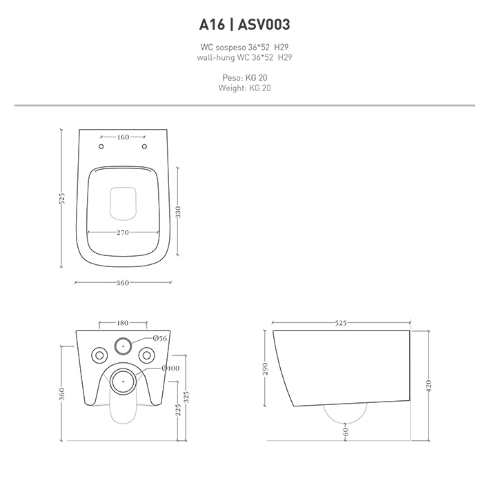 Унитаз подвесной Artceram A16 ASV003 40 00 ARTCERAM A16 Унитаз подвесной 520х360 мм., безободковый, в комплекте с крепежом, цвет Brown tortora