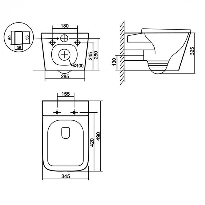 Унитаз подвесной Azario Cascad M AZ-10002 безободковый, система смыва "Скрытое Торнадо", с быстросъемным сиденьем микролифт