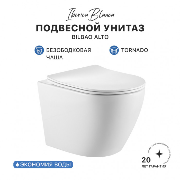 Унитаз подвесной IBERICA BLANCA BILBAO ALTO Tornado белый (IB.BLA.234.1B1)