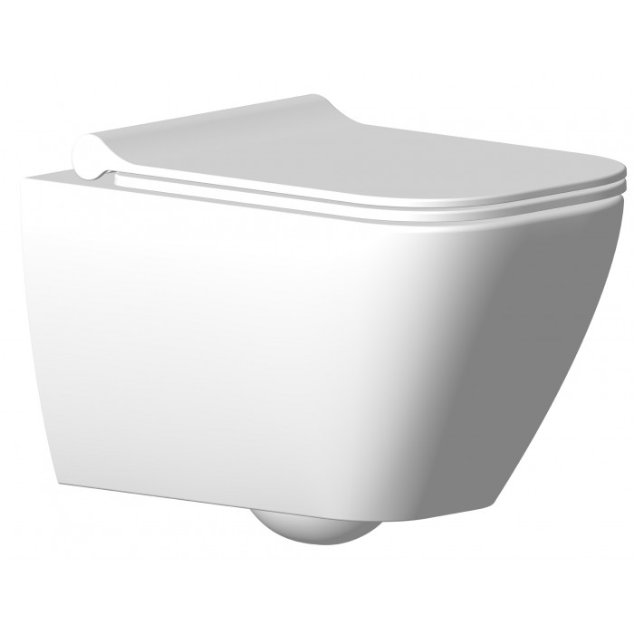 Унитаз подвесной Seramiksan Saturn безободковый, с тонким сиденьем микролифт, белый (A141151H+A090001)