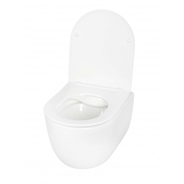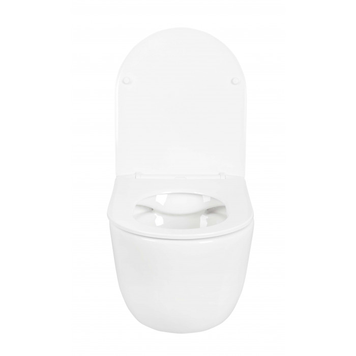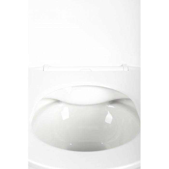 Сиденье из дюропласта с антибактериальным покрытием и механизмом плавного опускания обеспечивает комфорт и гигиену. Унитаз легко чистить благодаря гладкой поверхности и отсутствию труднодоступных мест.