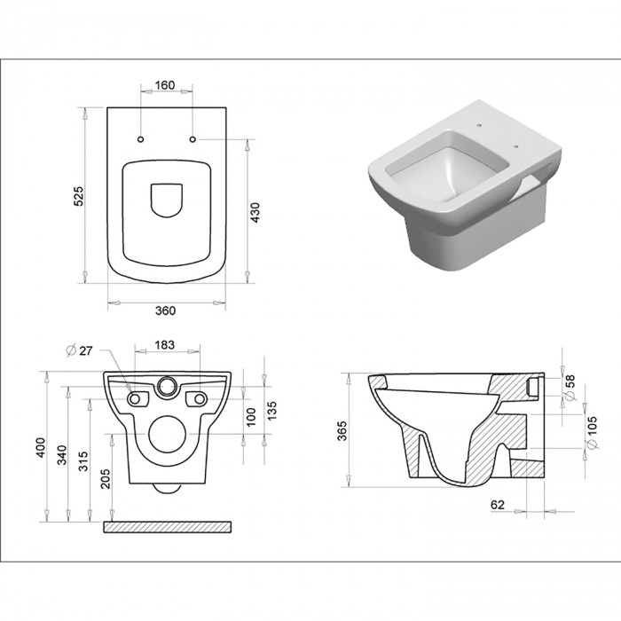 Унитаз подвесной Turavit PLAZA в комплекте с тонким сиденьем микролифт (PLZ 1710+0419)