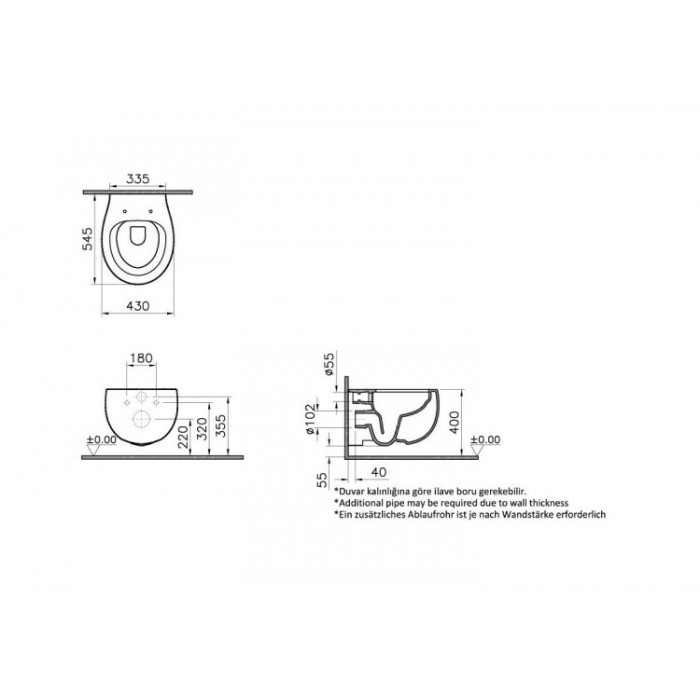 Унитаз, Vitra, Memoria, безободковый (с открытым смывным краем), тип установки-подвесной, ширина, мм-430, глубина, мм-545, высота, мм-345, форма чаши-овальная, выпуск-горизонтальный, материал-керамика, сиденье-необходимо заказать, вид грязеотталкивающего покрытия-VitrA Clean, цвет-белый