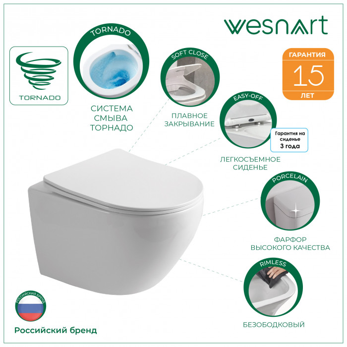 Унитаз подвесной WesnaArt NOVA TORNADO 214-NOV03, белый