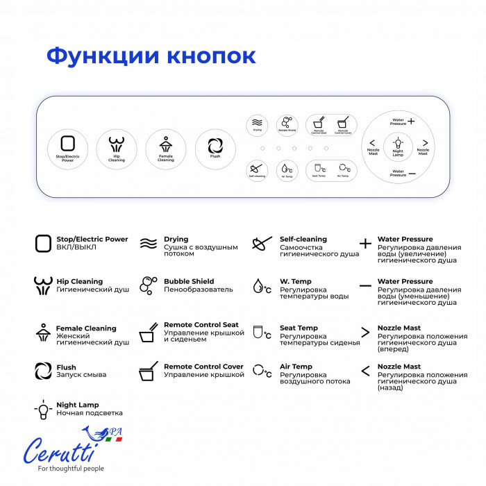 Унитаз напольный Ceruttispa CHIARA Smart CT11167 с дистанционным управлением