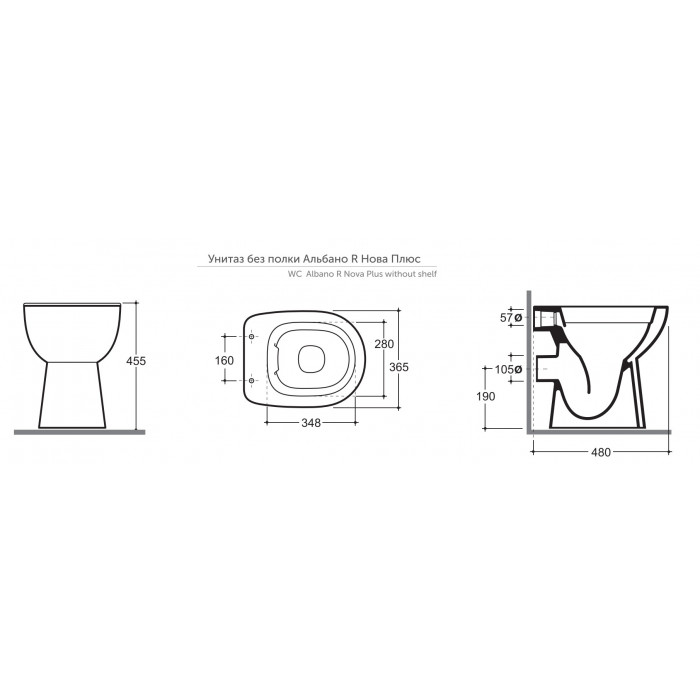 Унитаз напольный Керамин Альбано R Нова Плюс 370х480х460 без полки, белый CS00087550 Белоруссия напольный 5 лет горизонтальный фарфор