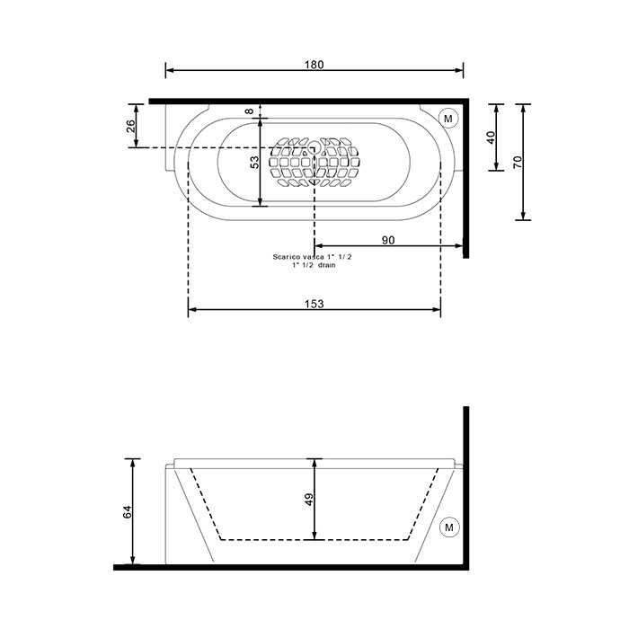 Ванна акриловая с гидромассажем 180x70 см GRUPPO TREESSE PLAYA V8187DV8187DBN8FDSBN8FDS