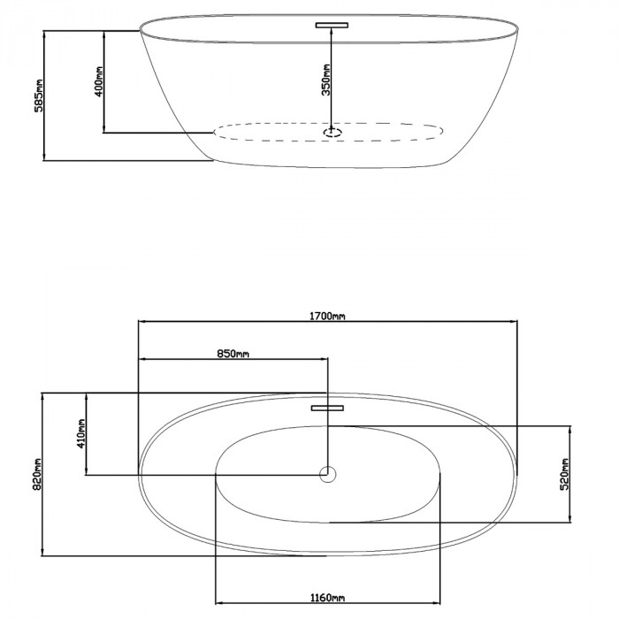 Ванна акриловая 170х82 см Loranto CS-14-170 отдельностоящая, в комплекте с сифоном и опорными ножками