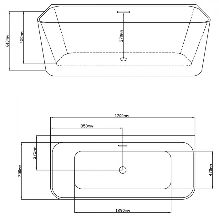 Ванна акриловая 170х75 см Loranto CS-04-170 пристенная, в комплекте с сифоном и опорными ножками