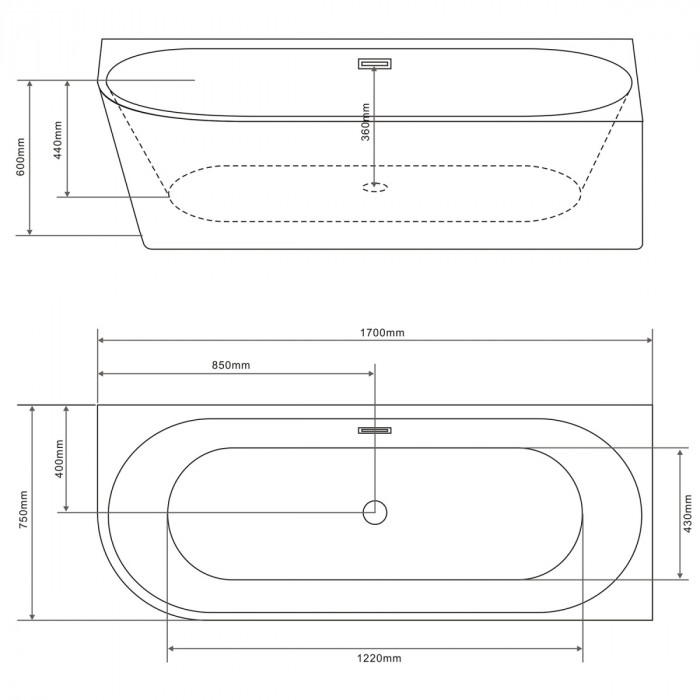 Ванна акриловая 170х75 см Loranto CS-06R-170 угловая, правосторонняя в комплекте с сифоном и опорными ножками