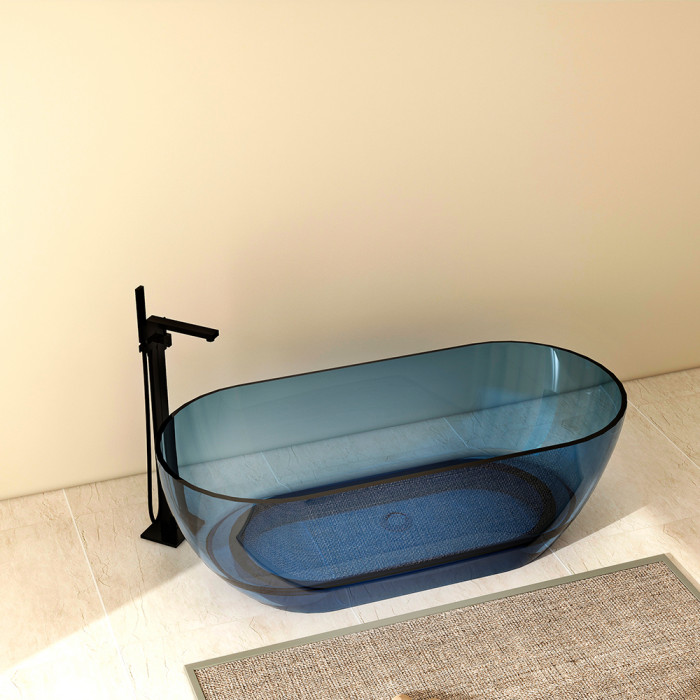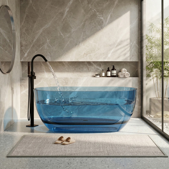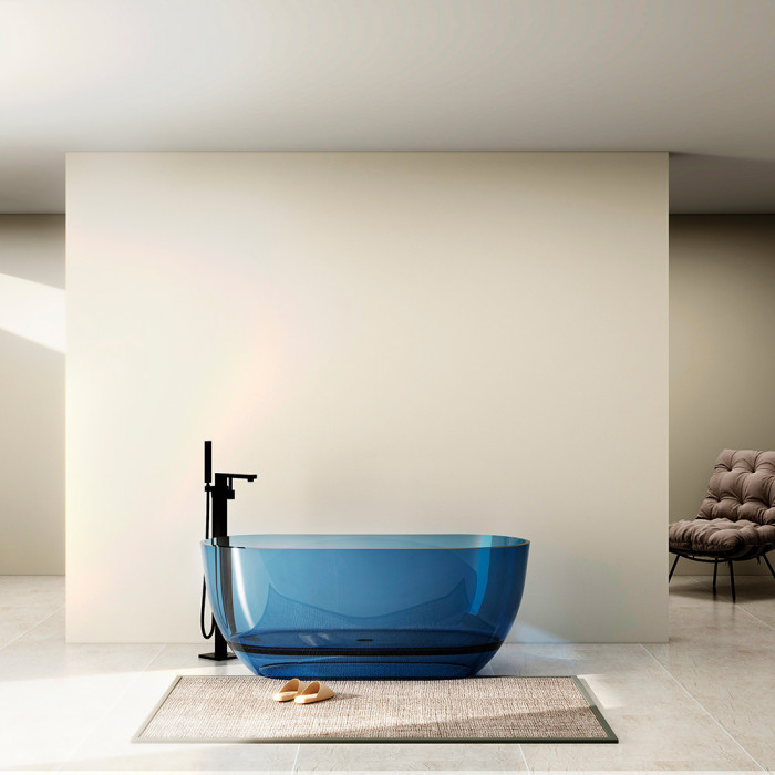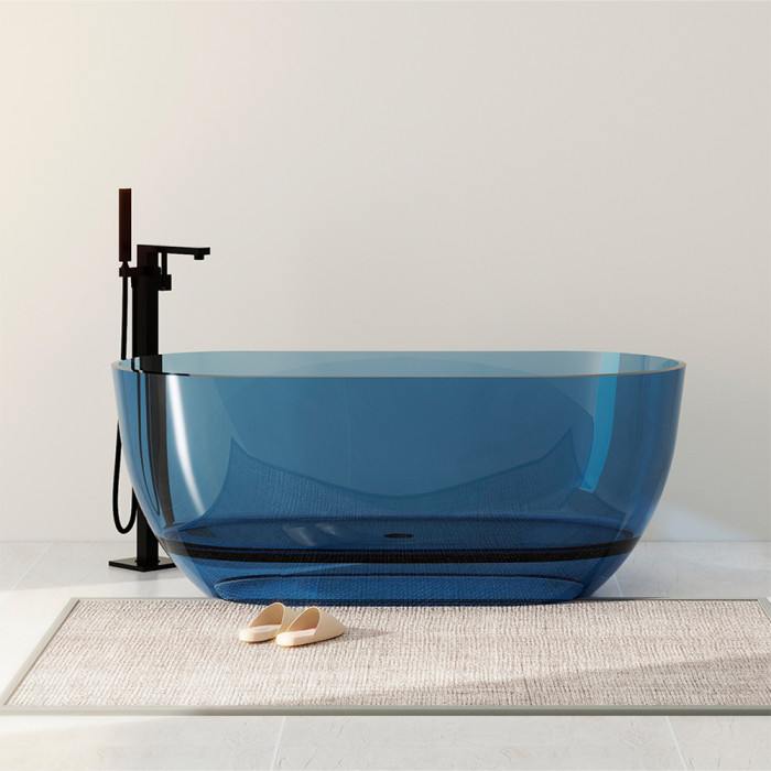 Полная прозрачность с голубым оттенком — ванна выглядит лёгкой и воздушной, пропускает свет, создаёт wow-эффект в интерьере