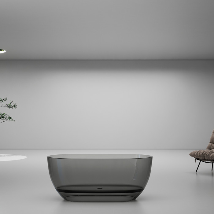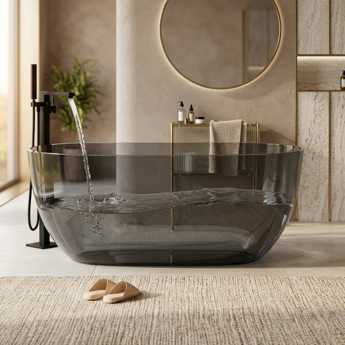 Дымчато-серый прозрачный эффект — ванна выглядит воздушной и невесомой, создаёт wow-эффект и игру света в интерьере