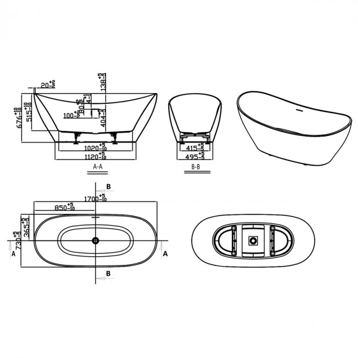 Ванна акриловая 170х73 см Creo Ceramique TOURS TO5001 отдельностоящая