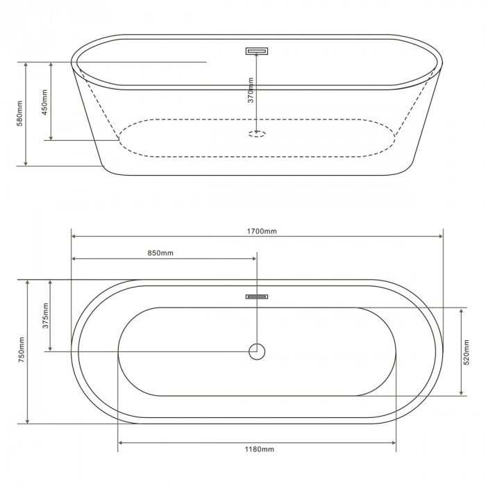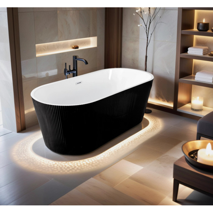 Ванна акриловая 170х75 см Loranto CS-03mB-170 отдельностоящая, в комплекте с сифоном и опорными ножками, черный
