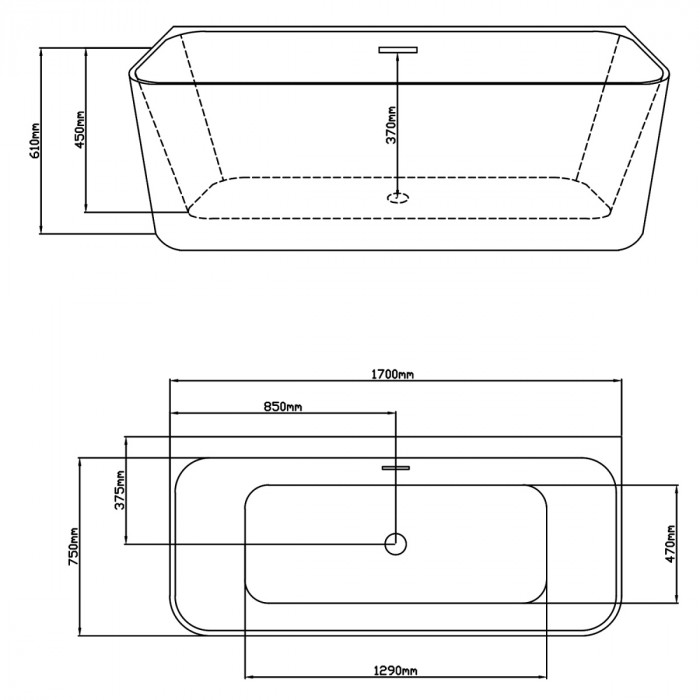 Ванна акриловая 170х75 см Loranto CS-12-170 пристенная, в комплекте с сифоном и опорными ножка